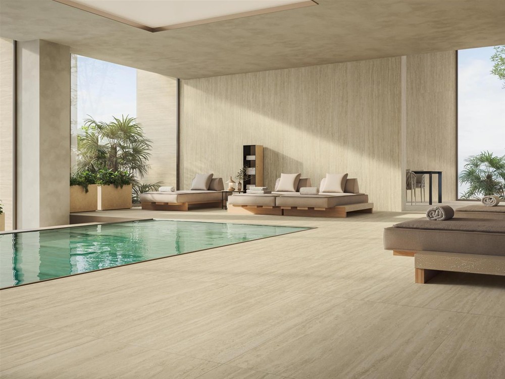 Marvel T je výsledkom hĺbkového výskumu travertínu a ponúka modernú a textúrovanú interpretáciu, ktorá zostáva verná elegancii a vizuálnemu dopadu prírodného kameňa. Exkluzívne farby rozprávajú rôzne príbehy: Halo, najbelší travertín, zachytáva svetlo a vzácnosť jedinečného lomu.