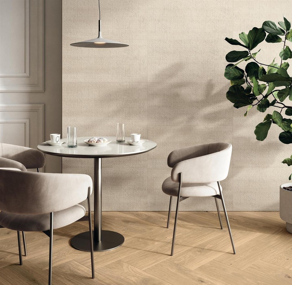 Doska vyjadruje autentické teplo duba prostredníctvom bohatej, prirodzenej grafiky, kde uzly a farebné variácie dodávajú povrchu hĺbku a realizmus. Dekor Patio s povrchovou úpravou Grip ponúka špecializovaný vonkajší návrh s grafikou s efektom tatami, ktorá je ideálna pre terasy a verandy. Návrh Layer dopĺňa hladká 3D nástenná krytina s efektom tapety vo svetlom a všestrannom odtieni, ktorá je navrhnutá tak, aby ladila so všetkými nuansami kolekcie.
