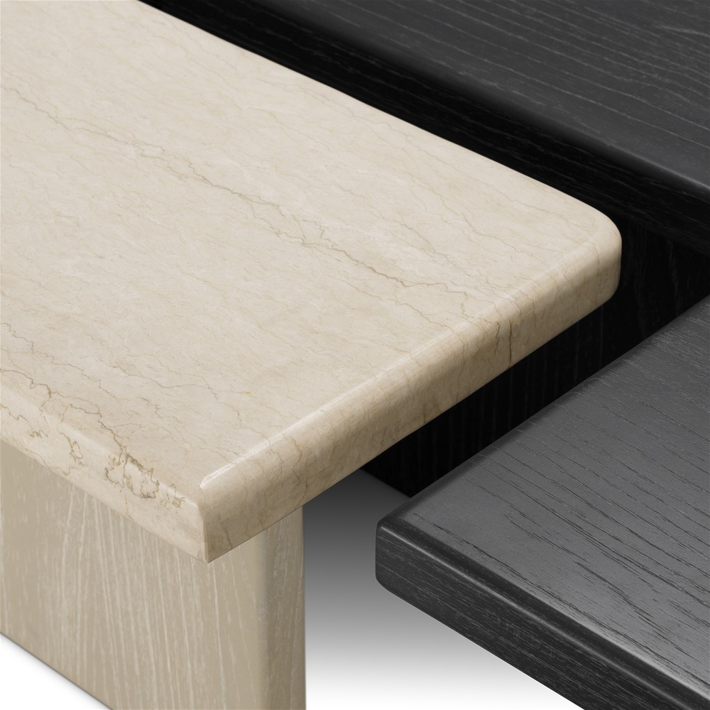 Beige marble | charcoal grey oak veneer