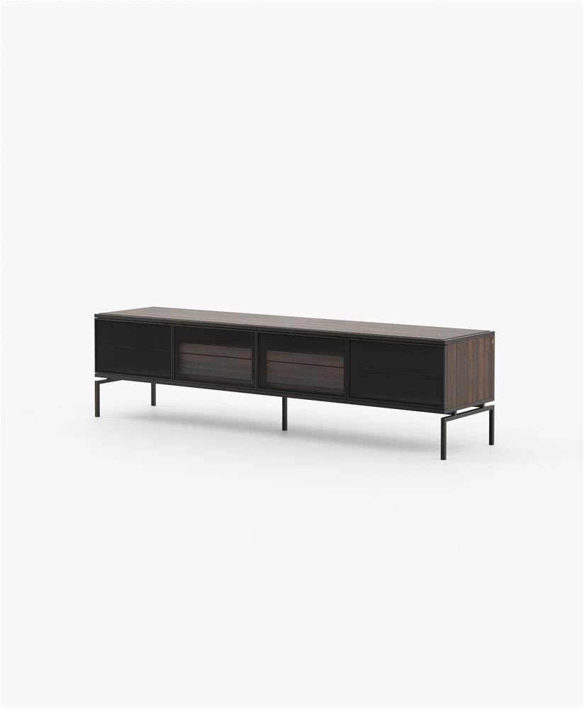 Austen je vysoko funkčná a vizuálne ohromujúca TV skrinka so štyrmi elegantnými sklenenými dvierkami, ktoré umožňujú viacero možností ukladania. Jeho priestranná stolová doska je navrhnutá ako elegantný displej pre základné veci domácej zábavy a štýlovo a sofistikovane spĺňa praktické požiadavky moderných obytných priestorov.