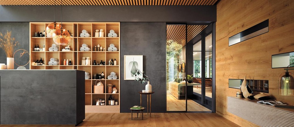 Boost ide nad rámec tradičného betónového efektu a vytvára prostredia zdobené originálnymi dekoráciami a charakterizované elegantnými porcelánovými povrchmi a koordinovanými dlaždicami v intenzívnych odtieňoch.