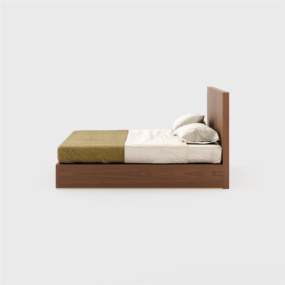 Drevená posteľ Duane s elegantnou metalickou linkou. Posteľ sa dodáva vrátane roštov.