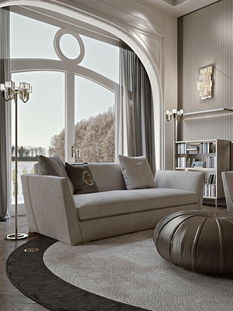 Podrúčky : verzie s čalúnenými podrúčkami (hotové pohovky, koncová časť, leňoška a denná posteľ). Na položky bez čalúnených lakťových opierok (stredové prvky) je možné pridať lakované opierky z bronzu, čierneho chrómu, zlatého chrómu alebo saténovo bronzového lakovaného kovu.