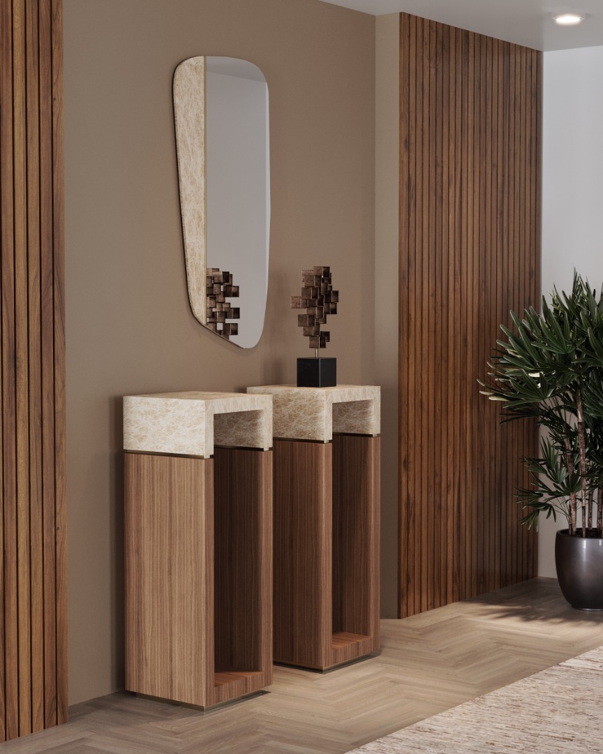 Zrkadlo Eclosion je jednoduché, ale sofistikované. Vyplýva z priesečníka geometrických tvarov, v kompozícii hladkých plôch. Perfektné ako v modernej obývačke, tak aj v minimalistickej spálni, zlepšuje dekoráciu a dodáva perspektívu priestoru.