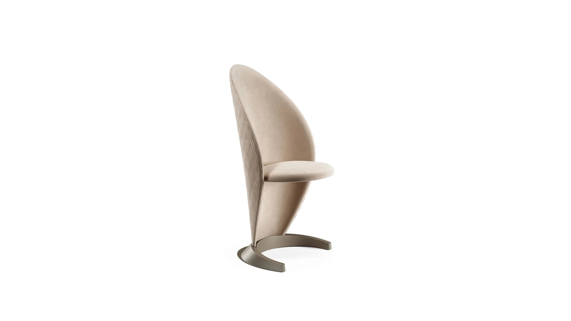 Stolička s dreveným rámom a čalúnená kožou alebo látkou. Základňa v bronzovej, grafitovej alebo titánovej úprave. Voliteľné podrúčky a prešívanie.